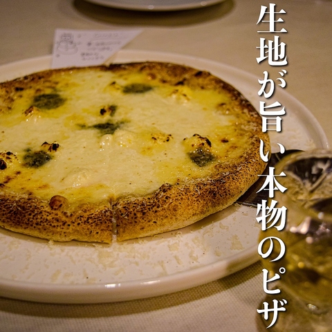 当店はピザ屋から始まりました。廿日市小麦をさらにお店で石臼で挽くことでうまれる風味と触感は唯一無二。テイクアウトも承っております。※写真は宮島はちみつを使用したクアトロフォルマッジ※時期によって異なります。