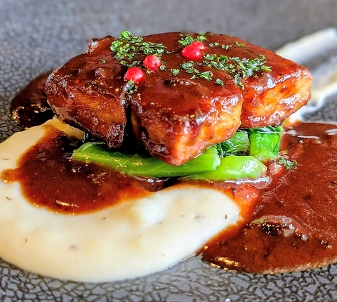 THE・お肉!!お肉本来の持つ旨みがギュッとつまった塊り焼きです!!ソースはお肉を焼く際に出てくる肉汁100%のグレイビーソースとタスマニア産粒マスタードで♪じっくりと焼き上げるのでお時間は30分ほど頂戴致します。