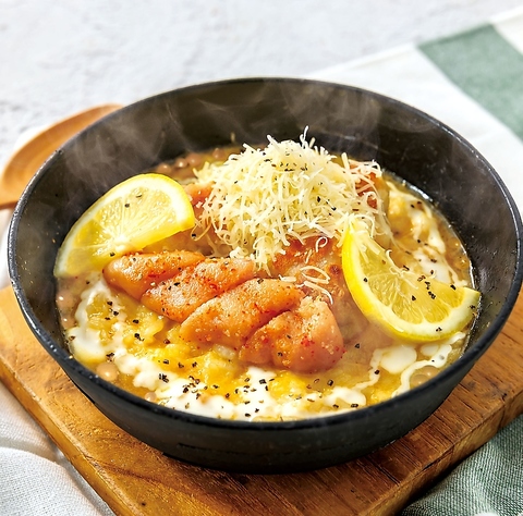 4種のチーズの個性が織りなすハーモニーと、こんがりグリルチキンの相性がバツグンなドリアです。プラス220円(税込)で大盛りにも♪熱々の状態でご提供しております。とろ~り伸びるチーズがたっぷり入ったドリアは絶品です◎