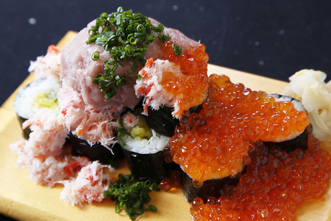 えん屋自慢のこぼれ巻き寿司。いくら、かに、ネギトロと豪快に乗っけました♪♪