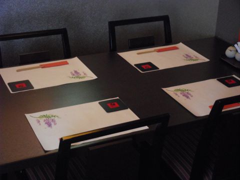 テーブルとテーブルの間には暖簾があり、さりげなく他の客との視界を遮る工夫がされている。