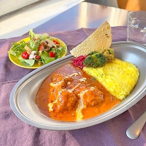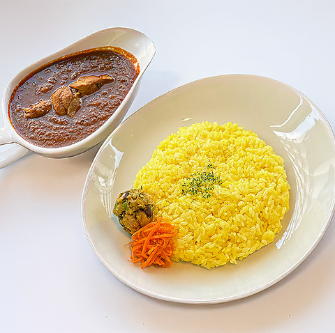 皮を丁寧に取り去った鶏肉と、小麦粉を使わないカレーソースあわせた、スパイス感たっぷりのカレーです。ホールスパイスを多用し、辛さの中に深い味わいを感じられるオリジナルレシピ。他では出会えないチキンカレーを是非どうぞ。