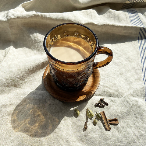 ヒナタ屋の特製ブレンドのスパイスとアッサム茶葉でつくっています。香料を使わない無添加、自然な味わいの香り高い本格チャイをどうぞ!