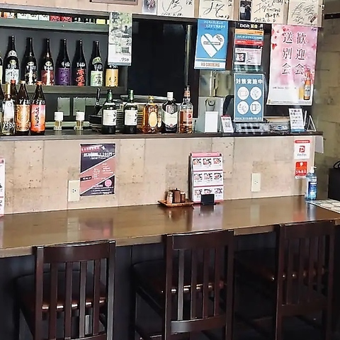 カウンター席でおくつろぎいただける空間はお一人様にもおすすめです◎こだわり日本酒、焼酎を多数取り揃えておりますので、お好みの一杯とご一緒に美味しい料理を心ゆくまで味わえます!心地の良いあたたかい雰囲気のカウンター席で気兼ねないお時間をお過ごしください。