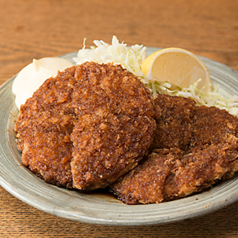 厚切りのハムに衣をつけてサクッと揚げました。特製ソースと塩の2種類の味付けでお楽しみ下さい。