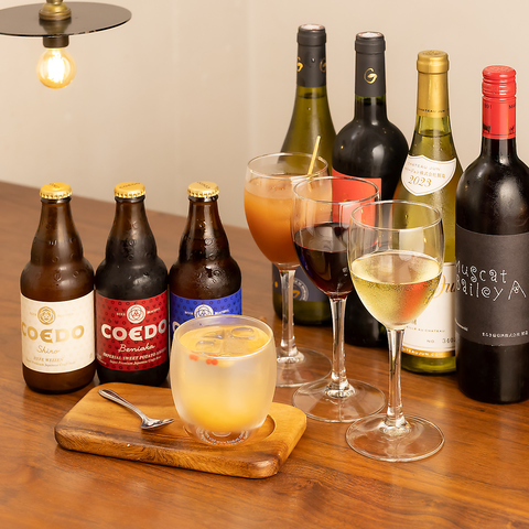 クラフトビールや国産ワインなど、豊富な種類のドリンクをお楽しみ頂けます。