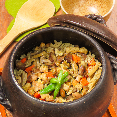 香り豊かな緑茶で丁寧に炊き上げた一品!大山鶏や人参、蓮根、牛蒡、いんげん、大豆、白シメジ、油揚げが入っており、各具材の旨みがご飯に染み込んでいます。緑茶の爽やかな風味が後味を軽やかにし、食事の締めにもぴったり♪飽きずに楽しめる魅力的なメニュー!
