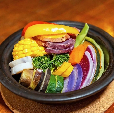 話題のタジンで築地御厨の旬野菜を味わって いただけます。季節ごとにかわるお野菜をお楽しみいただけます。