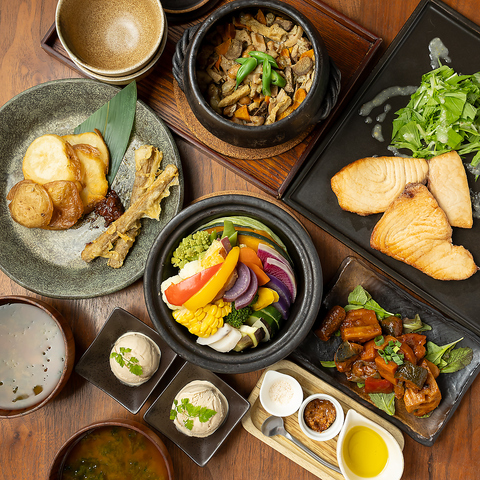 「からだにやさしいごはんとおのみもの」がコンセプト。素材そのものの美味しさを味わって頂く為、シンプルな調理を心掛けています。お野菜もお肉もお魚も・・・季節に応じた旬の食材は栄養も満点。特に季節のたのしみメニューは毎シーズン工夫を凝らしたものばかり。