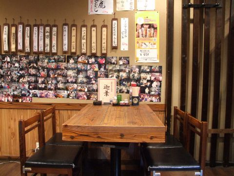 店内には、来店されたお客様の写真がびっしりと貼ってあります。お酒のお供にこちらもお楽しみください。