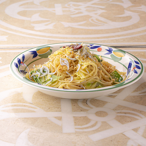 シラス、カラスミ、青ネギ、モッツァレラ、レモン