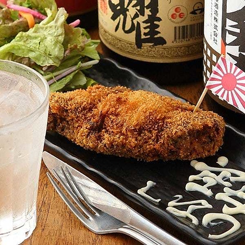 肉厚でジューシーなメンチカツに日章旗を付けてご提供。戦艦「信濃」をイメージした当店の名物料理です。たっぷり150gで食べごたえも抜群♪目でも舌でも楽しめる自慢の逸品。しっかり食べたい日にもおすすめです!お肉の旨みとサクサクの食感をぜひご堪能ください!