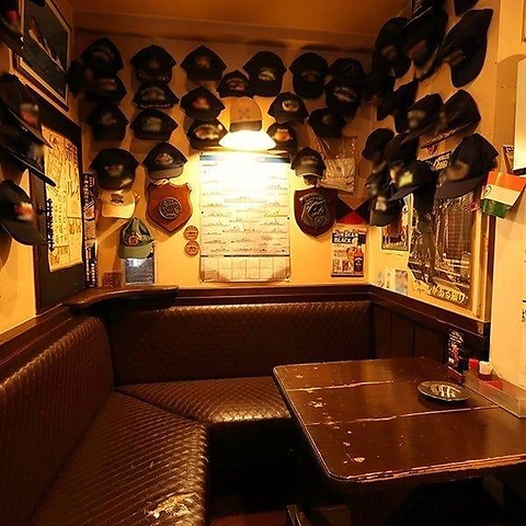 【4名様テーブル席】海軍グッズがずらりとディスプレイされた特等席。4名様までテーブルを囲んでお食事が可能です。気の置けないお仲間と語り合う日にぜひ。横須賀観光帰りの方にもおすすめのお席♪ぜひ当店で海軍の雰囲気をたっぷりご堪能ください。世界観に引き込まれることでしょう。