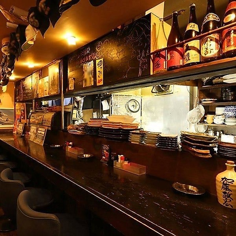 目の前で調理が見える席♪【カウンター席】おひとり様OK!気軽にふらっと立ち寄れる♪1~5名様!調理場前のカウンター席は7名様まで着席OK!親しい方と語り合う日、おひとり様でゆっくりとお料理やお酒を楽しまれたい時にどうぞ♪落ち着いた雰囲気でごゆっくりとお過ごしいただける空間です。