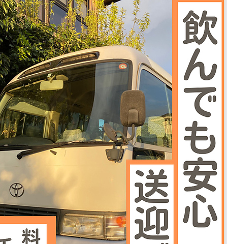 往復2,000円送迎バスサービスも御座います。10名様ご利用予定のお客様よりご予約を承っております