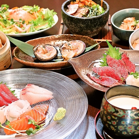 ★飲み放題90分付き★【満月コース】全9品!お一人様5500円◎宴会等にもお勧め♪〆には季節のごはん等!クーポンご利用で更に自慢の一品を追加サービス!
