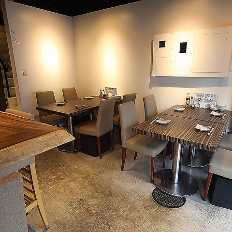 【1階テーブル席】カウンターとしてもご利用いただける最大10名様まで座っていただけるテーブル席です。
