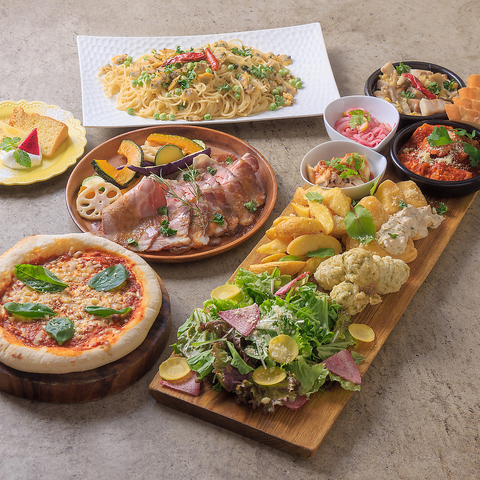 当店一番人気!!の3980円のプランは驚きの12品に2時間飲み放題が付いたお得なコース!『このボリュームでこの値段なの?!』とお客様から大変喜ばれています♪【西千葉/千葉駅/イタリアン/女子会/肉/貸切/飲み放題/千葉/チーズ/ピザ】