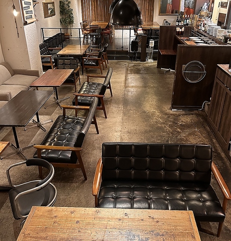 店内に入ると大人な雰囲気を感じながら、ちょっとおしゃれなハイテーブルやテーブル席。大人数でもデートでもお一人様でも、ご利用いただけるように各シーンを想定した席レイアウトや素材の違うテーブルをご用意しています。【西千葉/千葉駅/イタリアン/貸切/肉/女子会/チーズ/千葉/飲み放題/ピザ】