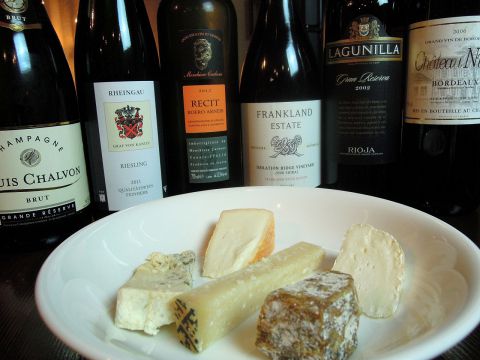 大人の隠れ家的な店内は、お酒を楽しむのにぴったり。チーズの盛り合わせなど、ワインに合う料理が魅力。