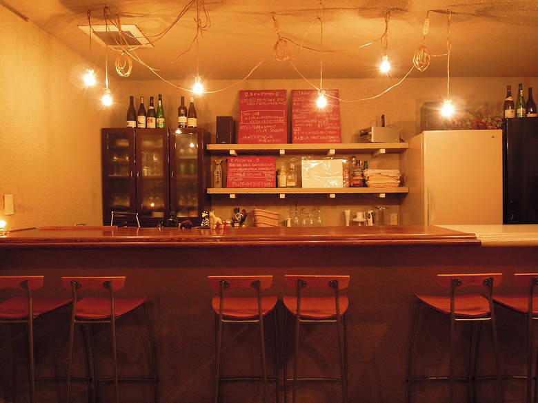 大人の隠れ家的な店内は、お酒を楽しむのにぴったり。チーズの盛り合わせなど、ワインに合う料理が魅力。