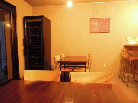 グループでゆっくりとお酒を楽しめる空間。ワインを味わいながら気兼ねなく楽しめる。