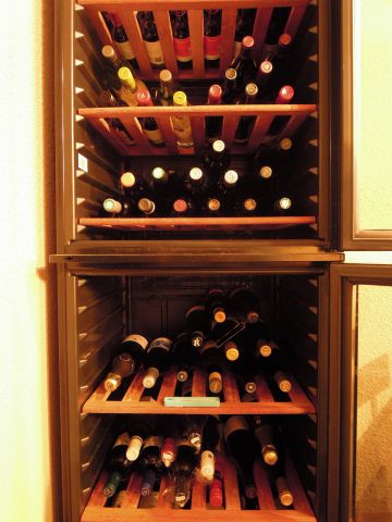 オーナーが厳選した、こだわりのワインがいっぱい寝かされている。お気に入りの1本が見つかるかも。