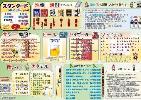 【フード70種類以上!ドリンク約40種類以上】3時間食飲み放題スタンダードプラン3880円(税込) ※3名様~
