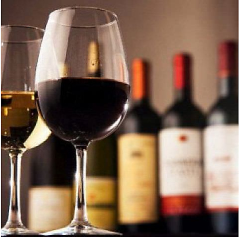 ワインもスパークリングもOK☆ワンランク上の飲み放題!おつまみ2品、ピザも付いたお得なコース♪