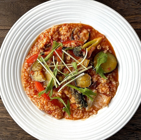 トマト・クリーム・ブロード・自家製ミートソースの4種からベースを選べます!+230円で焼きリゾットも可能
