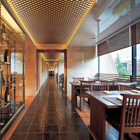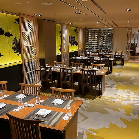店内からは、御堂筋のイチョウ並木を望み、季節感あふれる料理をお愉しみいただけます。人気の窓側のお席は最大4名様。また、最大10~32名様のホール個室もご用意可能です。