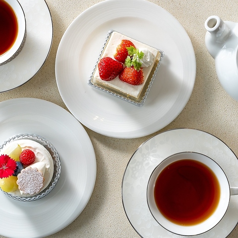 四季折々にさまざまな表情を見せる御堂筋にのぞむ店内では、季節ごとにテーマが変わるアフタヌーンティーセットやケーキセットをお召し上がりいただけます。