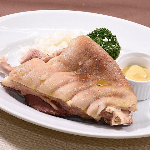 「ドイツ北東部の代表的な名物料理」塩漬けした豚のスネ肉を香味野菜と一緒にじっくり煮込んでおります。とてもやわらかい食感でジューシーな旨味があり、ビールやワインにとてもよく合います。ぜひご賞味ください。