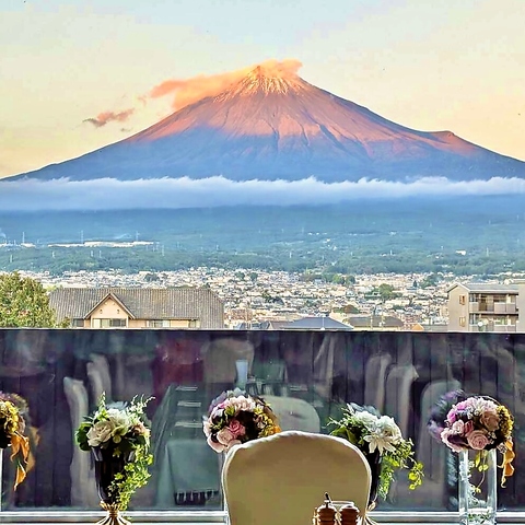 窓からは雄大な富士山が見え、おしゃれな雰囲気も◎お食事を一段と華やかにします