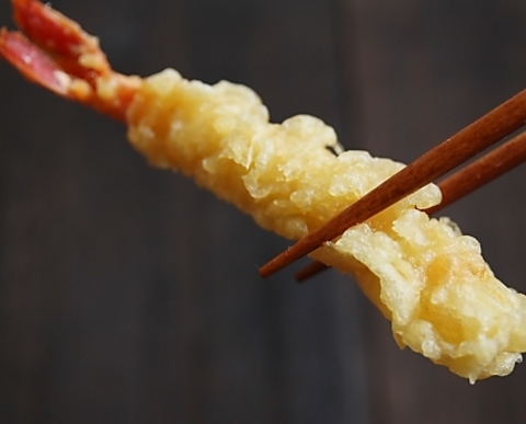 特製の甘タレが上げたての天ぷらに!天重とお刺身、サラダ、讃岐うどんがセットになった男性も満足のお膳です。天ぷら油も高級綿実油を使用しカラッとあがった天ぷらが好評です。