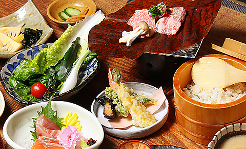 お食事は手作りにこだわり、創業以来の味を大事に日々進化しています。天重のタレなど料理に使うソース類・ハンバーグ・自家製生地と味噌で作るピザなど、細かいところまで素材を厳選してお作りいたします。また、生産者から直接仕入れる新鮮な食材をリーズナブルな価格でご提供いたします。