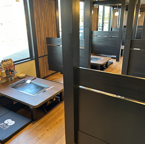 お子様連れの方にも安心な半個室のお席を設けています。4名テーブルを2卓ございますので広くお使いいただけます。お座敷のお席ですのでごゆっくりとおくつろぎ頂けます♪当日のご予約も承っていますのでお気軽にお越しください。