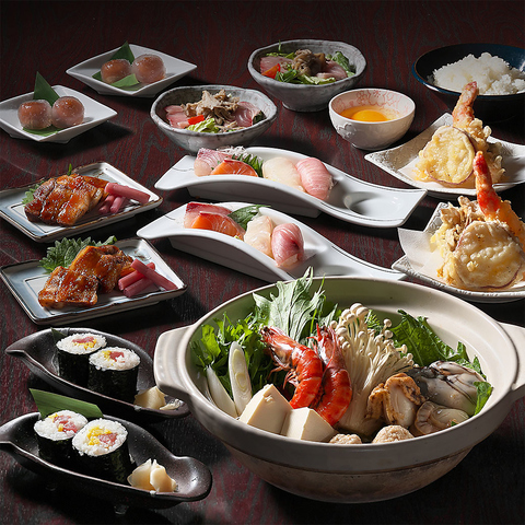 大海老天と生本鮪が入った江戸前寿司が堪能できるコースや旬の天ぷらと握り寿司が堪能できるコースなどご用意しております。料理のみのコースもございますのでお気軽にご相談ください。※写真はイメージです。