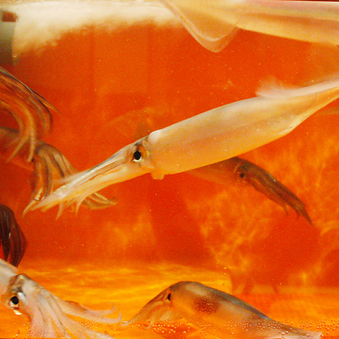 お店に入ると、店内に設けたいけすが…いけすで泳ぐイカや魚貝がお出迎え♪是非、泳ぐ姿をご覧ください☆