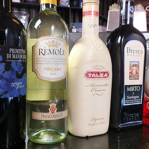 ピッツアやパスタに合うお酒の種類も豊富。グラスを傾けながらその日の出来事を楽しく語らおう。