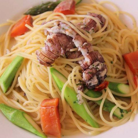 小樽産シャコと自家製スモークサーモンのパスタです♪期間限定なのでお見逃しなく!