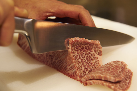 オープンキッチンならではの臨場感では、匠の技術を目の前で味わうことができます。
