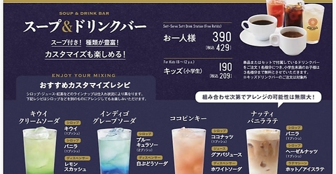 - スープ&ドリンクバー -スープ付き!種類が豊富!カスタマイズも楽しめる!-
