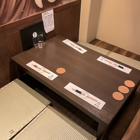 ロールカーテンを下ろし、半個室空間になる掘りごたつ座敷席をご用意しております。仕切りで仕切られゆったりくつろげるお席は、感染症対策の面でも安心してお過ごしいただけます。プライベートでのお食事はもちろん、接待や宴会等多彩なシーンにあわせてご利用くださいませ。