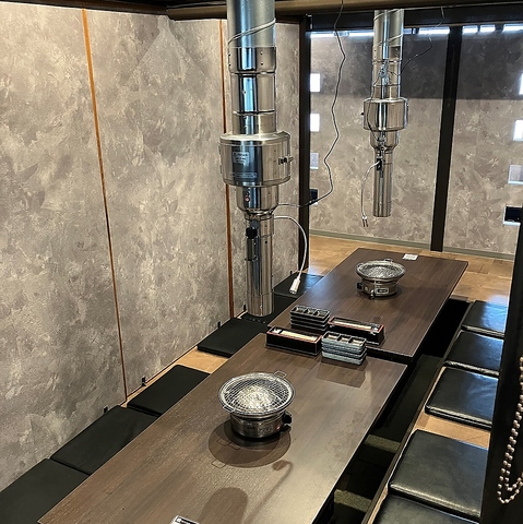 【匂いも付きずらい設備!】お席の中には無煙ロースターがございますので部屋内も自然と換気が行われており、デートやお仕事帰りでもニオイを気にすることなくおいしい焼肉をお召し上がり頂けます◇設備にもこだわった当店へお気軽にお越し下さい!全席完全個室となっております◎