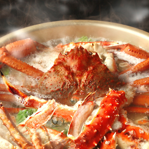 紅ズワイ蟹、本ズワイ蟹、タラバ蟹、蟹と魚介の漁師鍋など、季節のカニを豪快に味えるコースを常時ご用意
