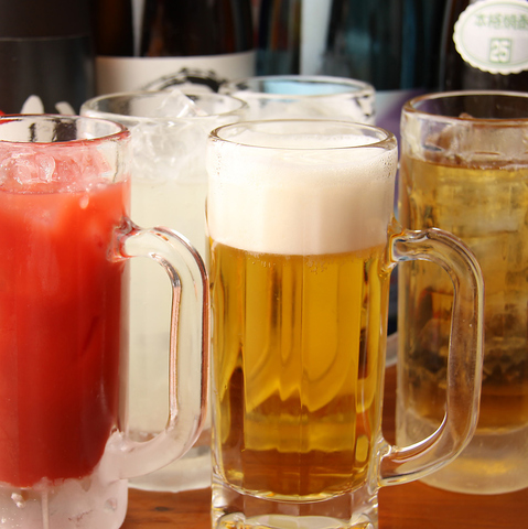 定番生ビールの他、ハイボール、サワー、焼酎等品ぞろえ多数。⇒ハイボール9種/サワー7種/カクテル各種/芋焼酎各種/麦焼酎各種/米焼酎各種/黒糖焼酎各種/泡盛各種/梅酒6種/ソフトドリンク