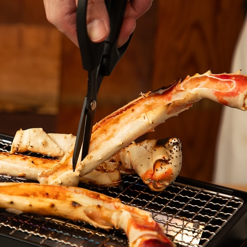 各テーブルにはカニばさみが用意され、思う存分蟹を味わい尽くせます。「蟹は剥くのが面倒」「剥くのに夢中で無言になりがち」というご心配はいりません! 「焼き」でも「茹で」でも、最適なタイミングを見極めて、スタッフが殻を剥き、美味しい身の部分をお客様にご提供致します。