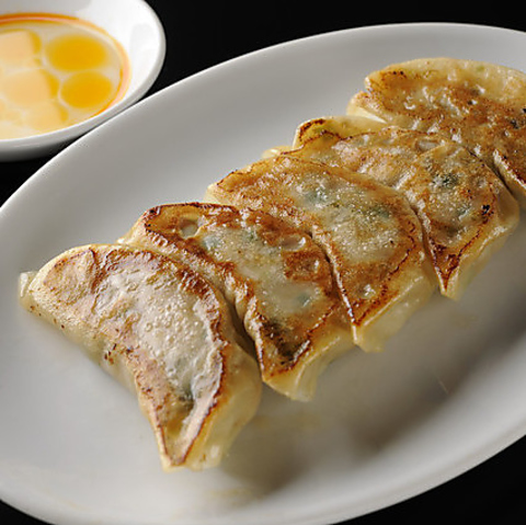 注文必至の看板メニュー・焼き餃子は、毎日手仕込みの自家製。外はパリッと香ばしく、中は肉汁じゅわっとジューシー!ひと口食べればビールが止まらない、老若男女に愛される安亭の名物です!
