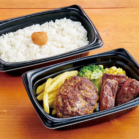 宮ハンバーグ120g+ワイルドカットステーキ80g弁当